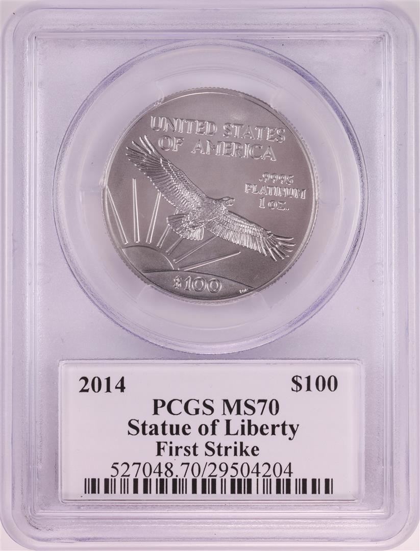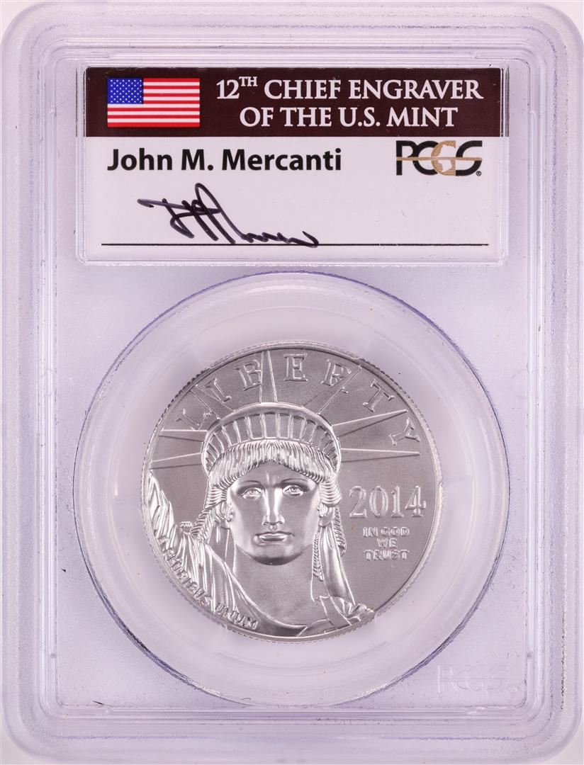 One 2014 $100 Platinum American Eagle Coin PCGS MS70 John Mercanti Signature. PCGS Graded.