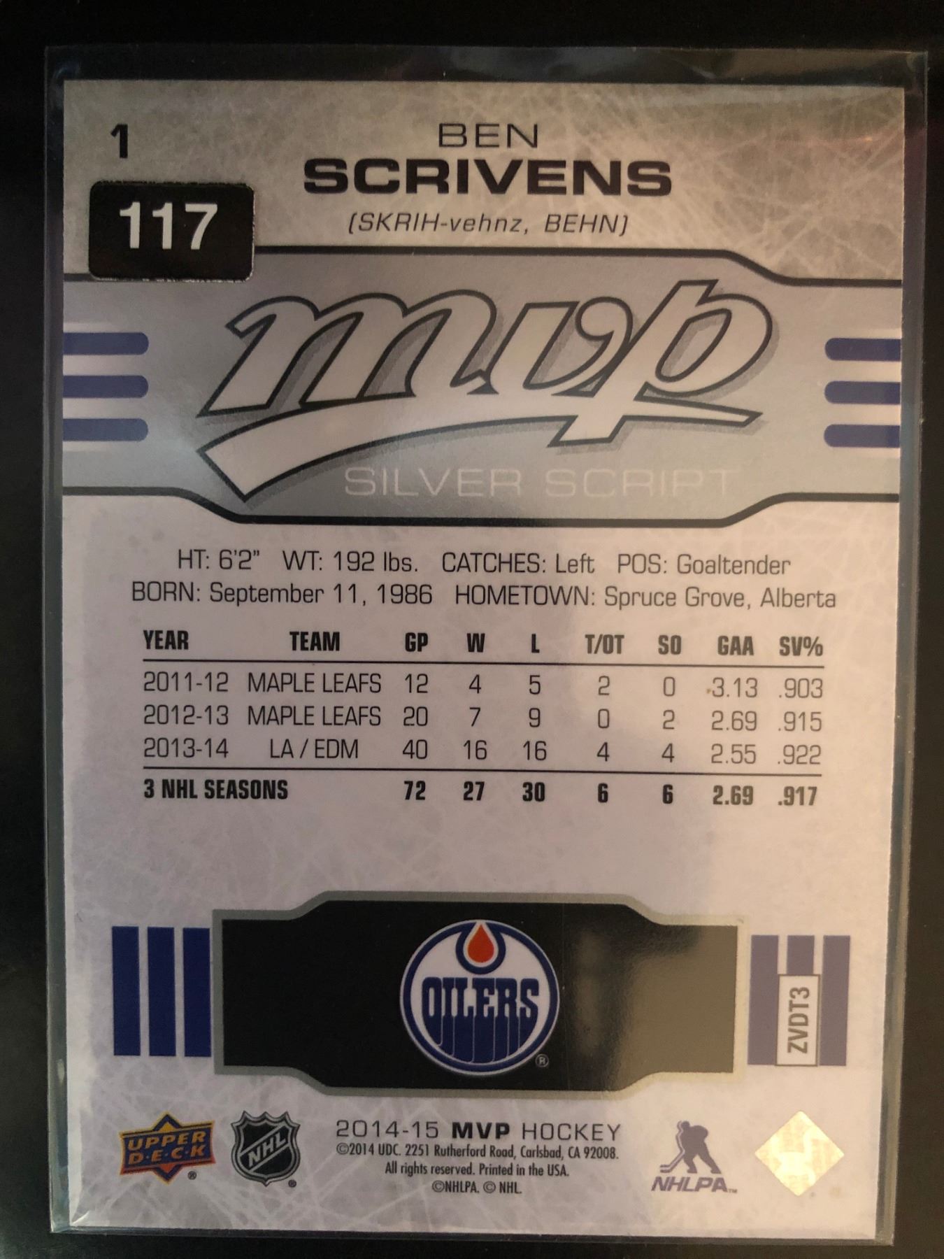 2014-15 MVP Silver Script Ben Scrivens Card #1