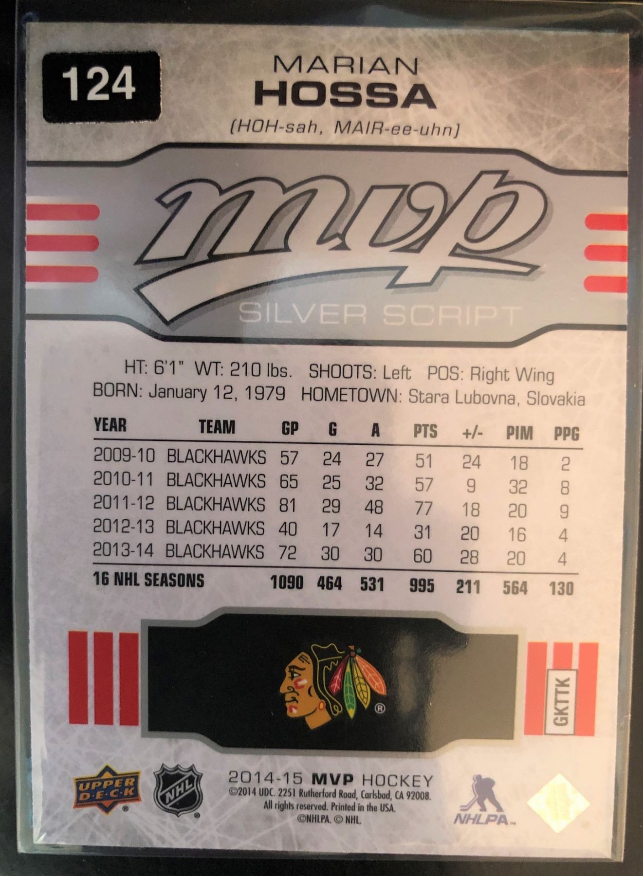 2014-15 MVP Silver Script Marian Hossa Card #257