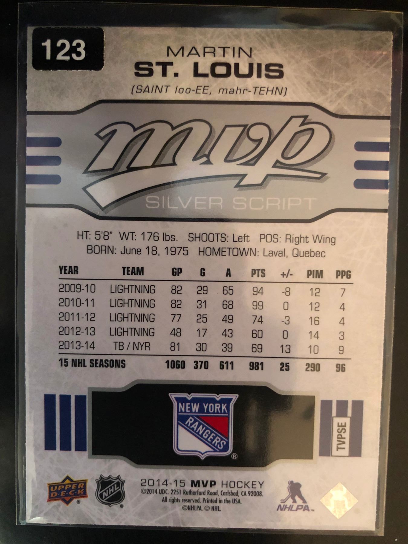 2014-15 MVP Silver Script Martin St.Louis Card #221
