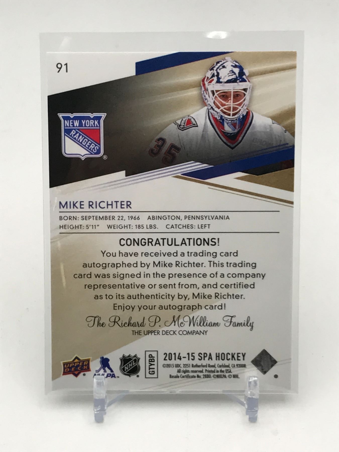 2014-15 UPPER DECK SPA HOCKEY MIKE RICHTER SIGNED TRADING CARD