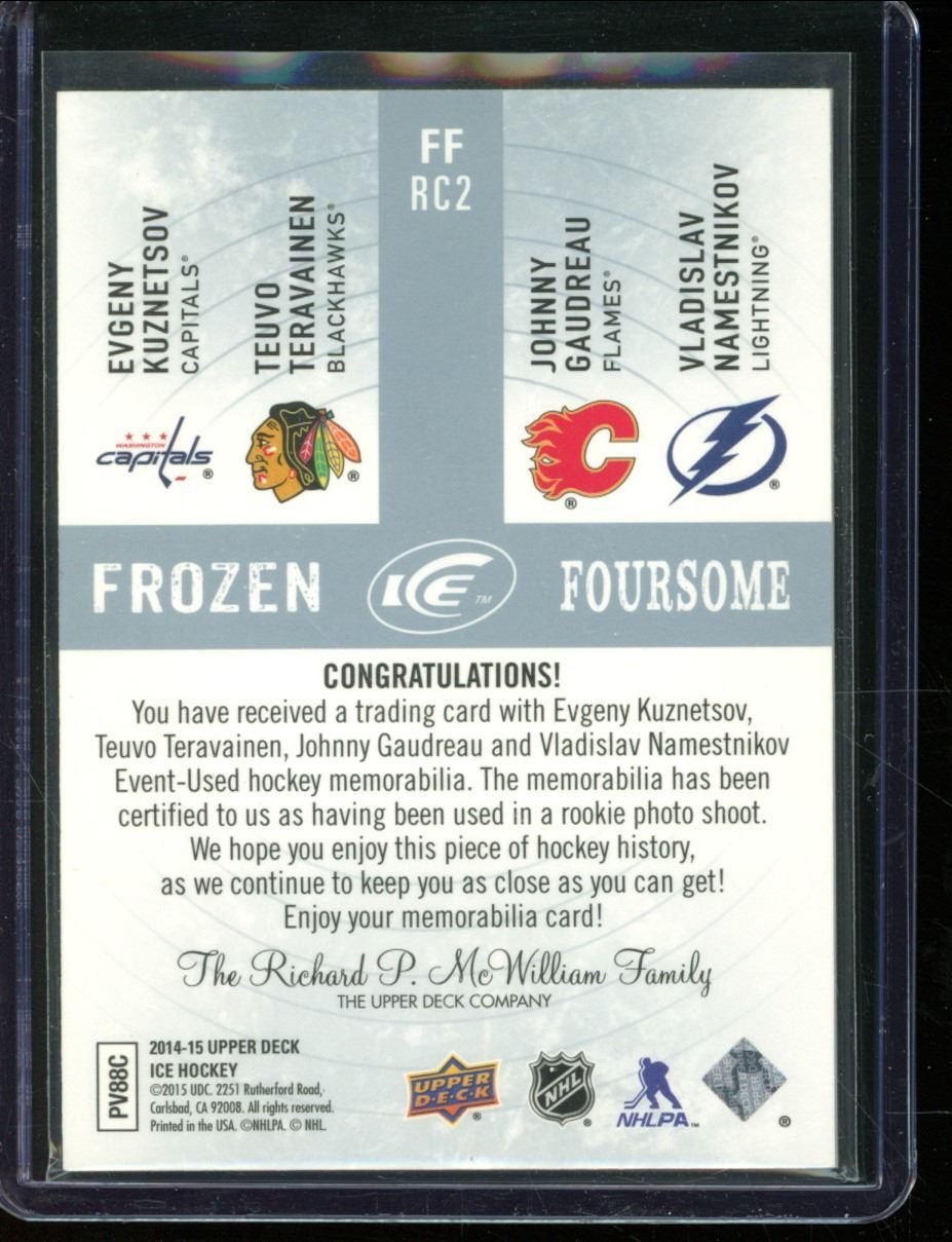 2014-15 Upper Deck Ice Frozen Foursomes Kuznetsov/Teravainen/Gaudreau/Namestnikov BV $30