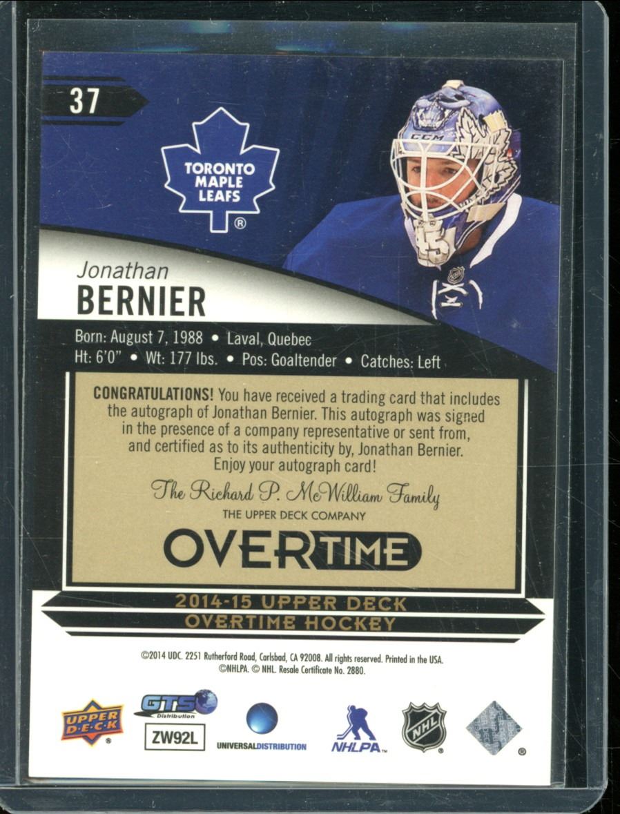 2014-15 Upper Deck Overtime Autographs #37 Jonathan Bernier BV $30