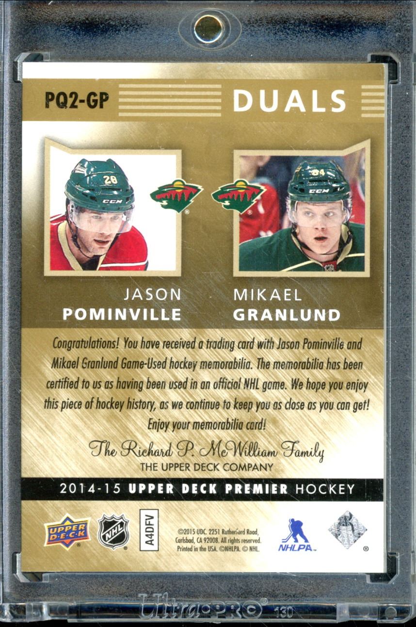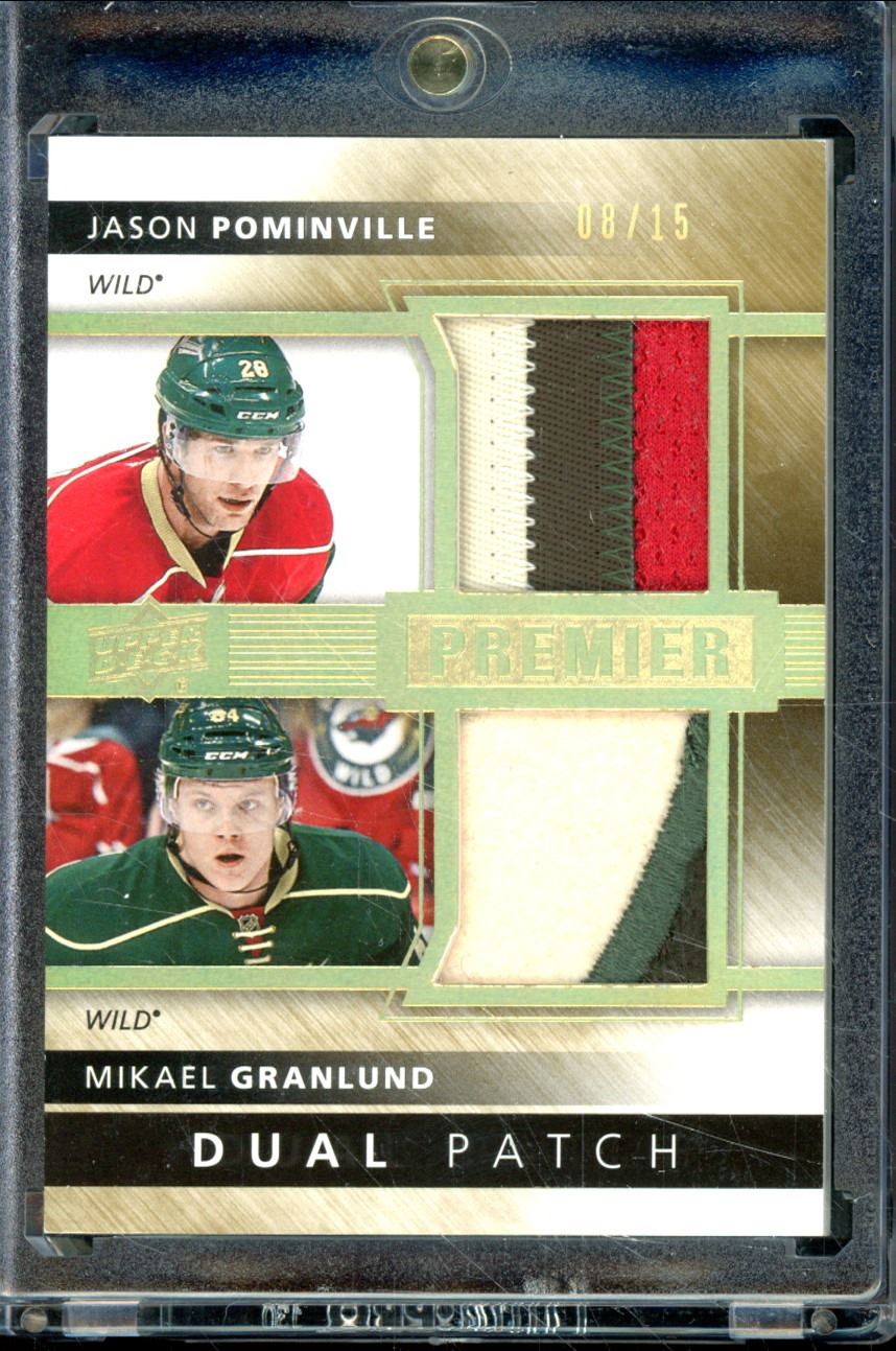 2014-15 Upper Deck Premier Duals Patches Jason Pominville/Mikael Granlund 8/15 BV $50