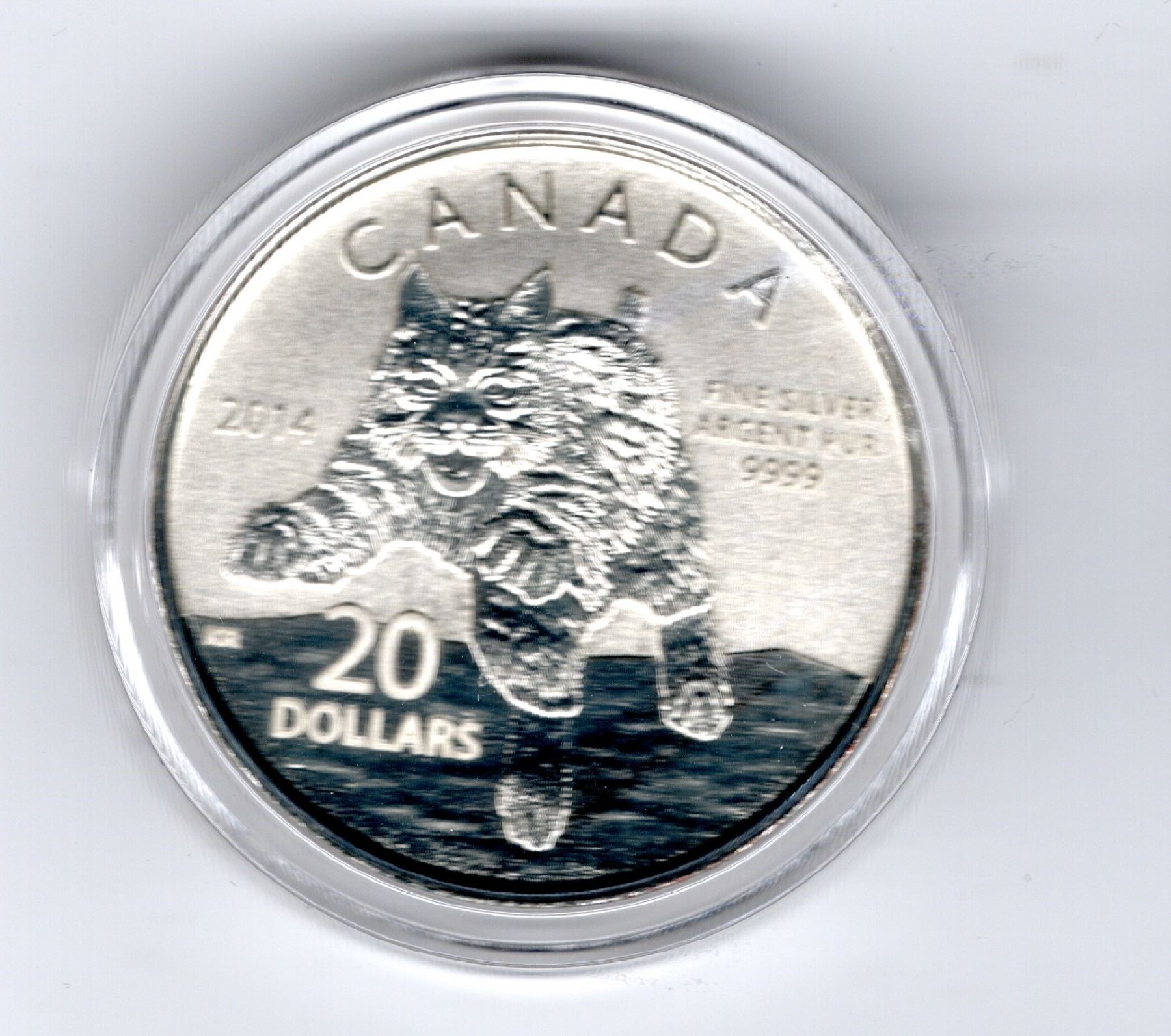 2014, 20 FOR 20, $20 FACE, QUARTER OUNCE SILVER COIN, LYNX, RCM