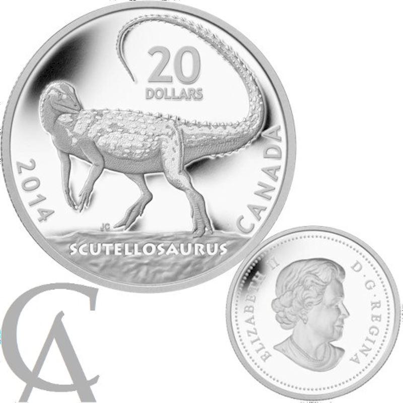 2014 $20 Fine Silver Coin - Dinosaurs of Canada: Scutellosaurus (no tax)