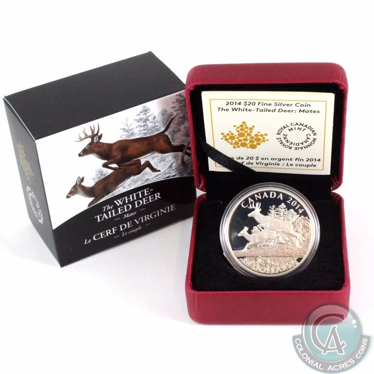 2014 $20 Fine Silver Coin The White Tailed Deer - Mates issued by the Mint (TAX Exempt)