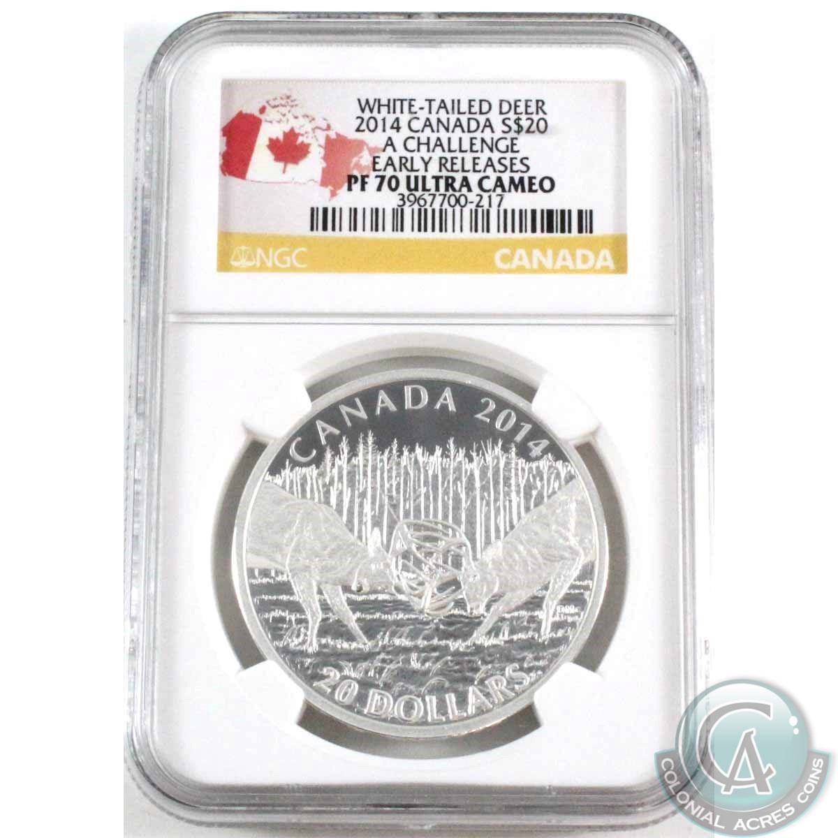 2014 $20 Fine Silver White Tailed-Deer series; A Challenge NGC Cert. PF-70; Ultra Cameo; Early Releases (Tax Exempt)
