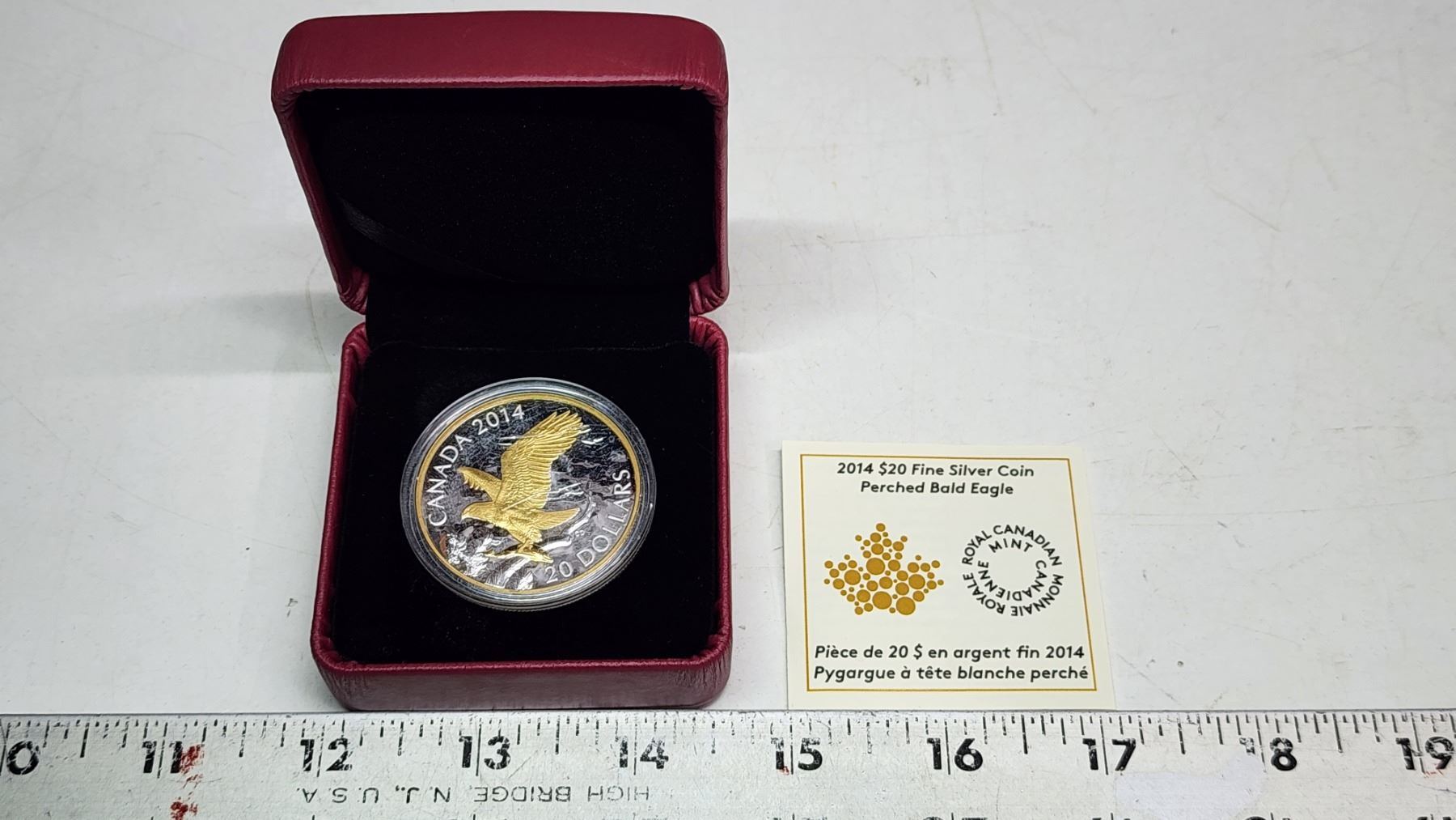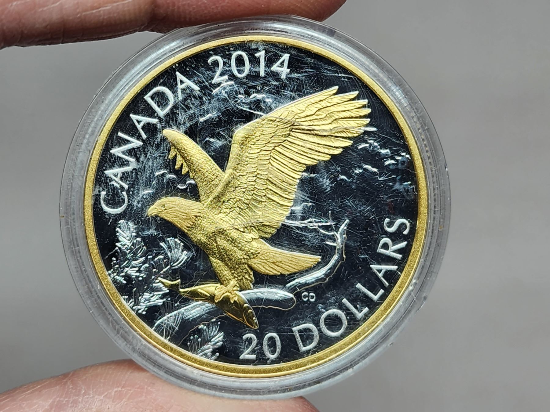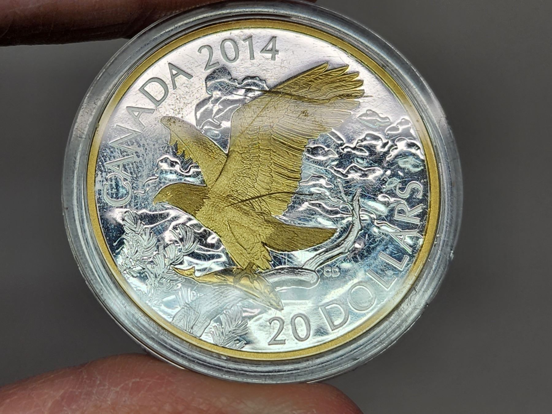 2014 $20 Gold Bald Eagle. Gold-plated 99.99% pure Silver. Housed in its original RCM case & box of issue.