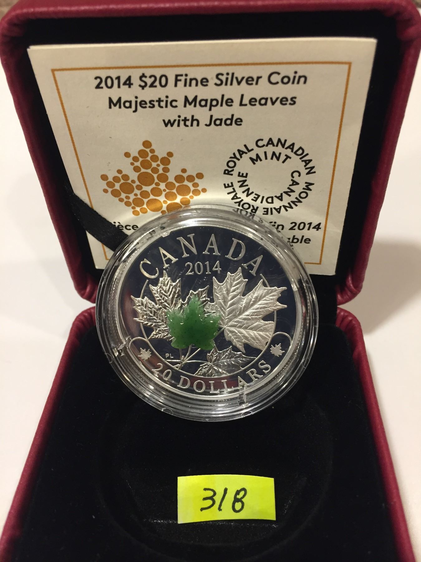 2014 - $20 'Majestic Maple Leaves with Jade' Fine Silver Coin