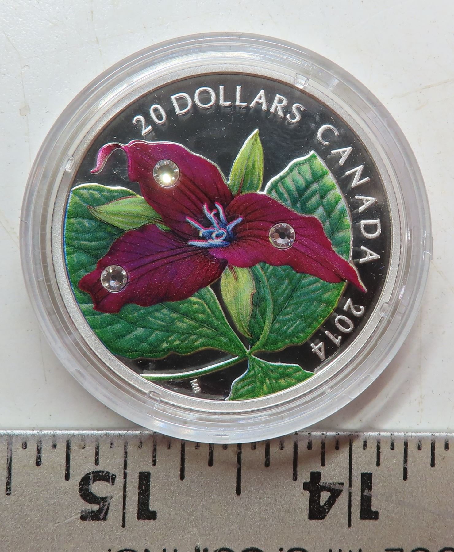 2014 $20 proof red trillium with crystal dew drops fine silver