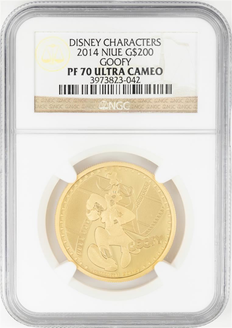 One 2014 $200 Proof Niue Disney Goofy Gold Coin NGC PF70 Ultra Cameo. NGC Certified.