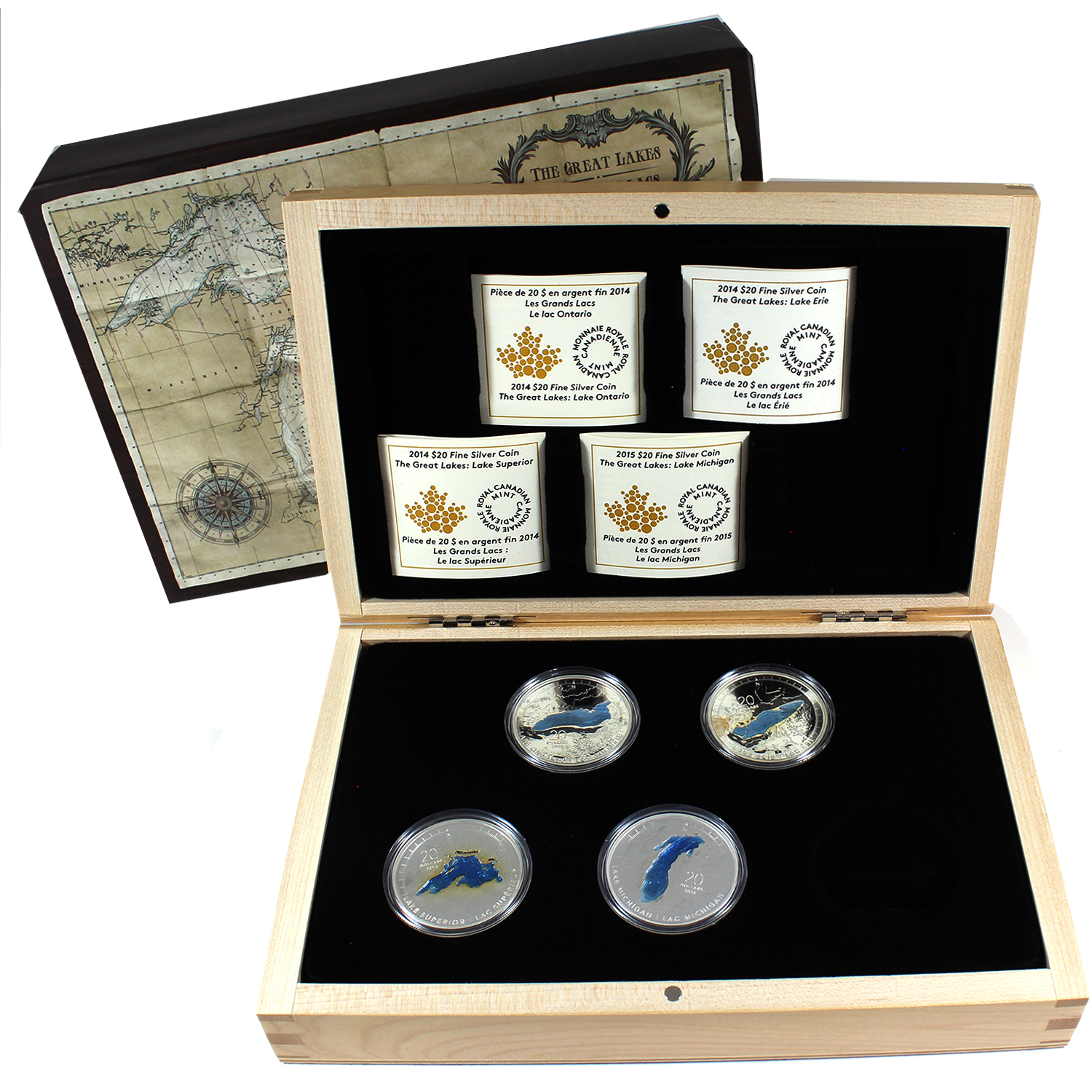 Lake Superior coin has some toning around the coloured centre. Set includes 4 of the 5 coins. (Tax Exempt)