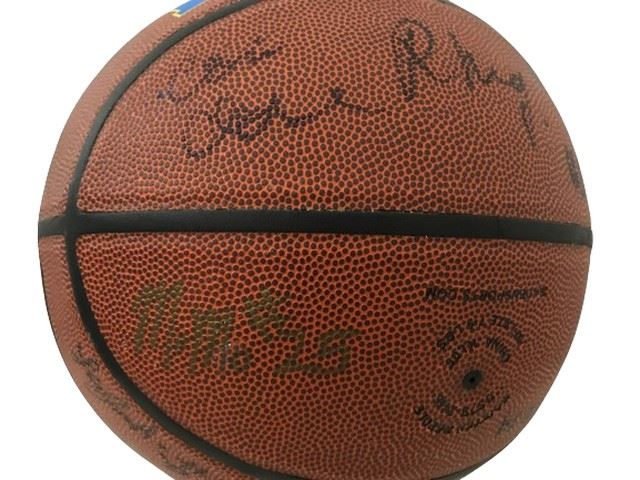UCLA Bruins girls basketball team signed by various 2014-2015 UCLA Bruins players #10, 26, 2, 24, 3, 20 34. Baden Sports basketball. Approximately 12 signatures.