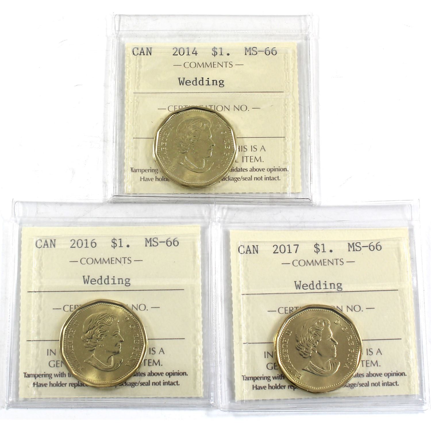 2014, 2016 & 2017 Wedding Loon Dollar ICCS Certified MS-66. 3pcs