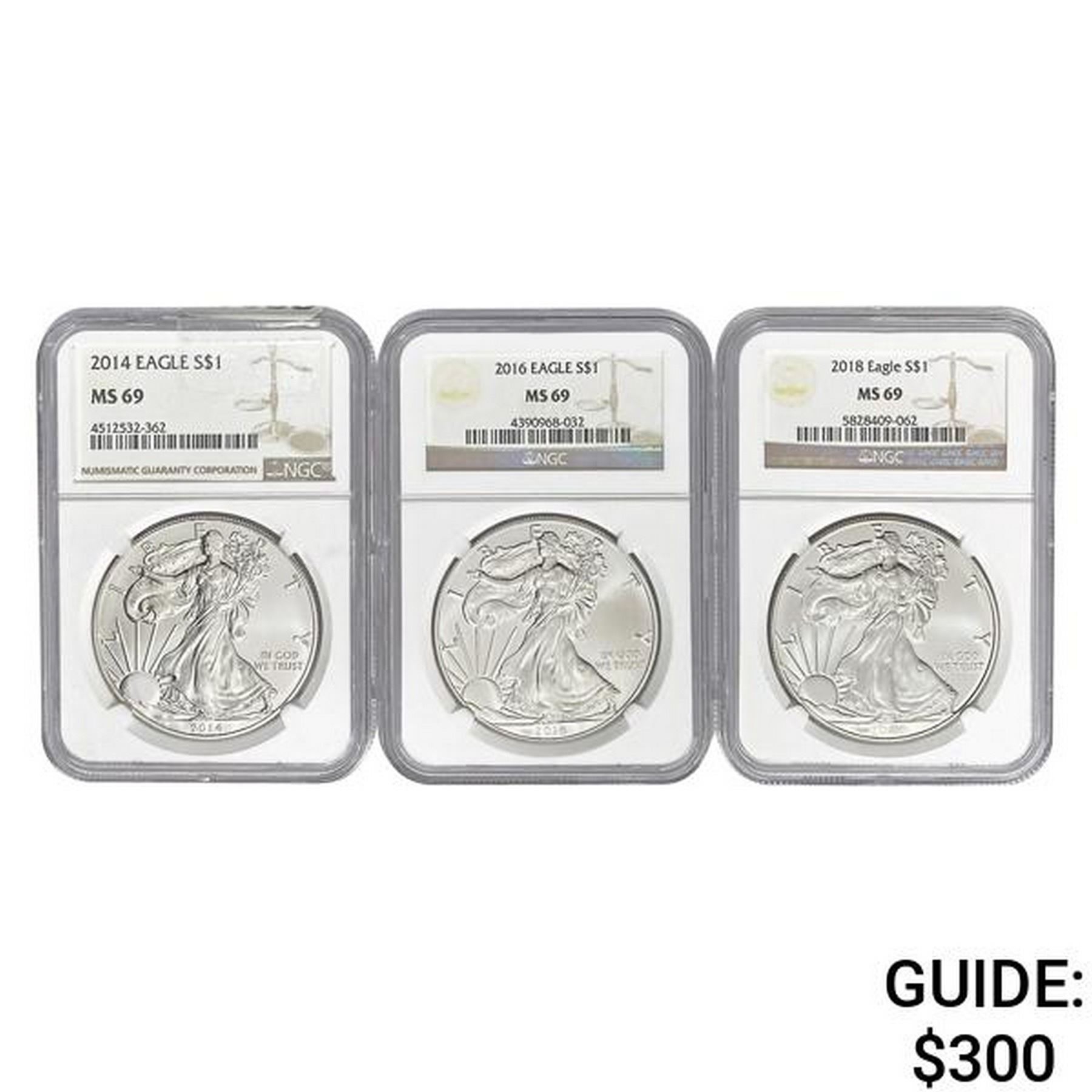 2014/2016/2018 Eagle $1 NGC MS69 [3 Coins]