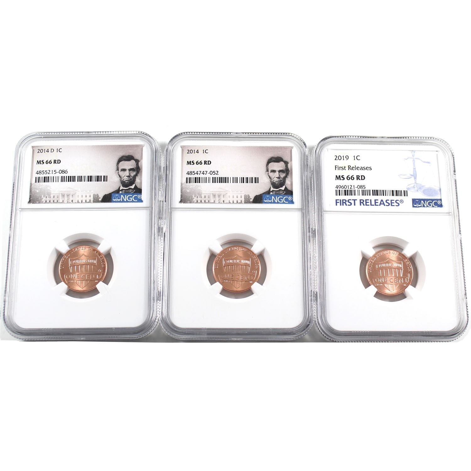 2014 & 2019 United States 1-cent NGC Certified MS-66. Lot includes 2014D, 2014 & 2019 First Release. 3pcs