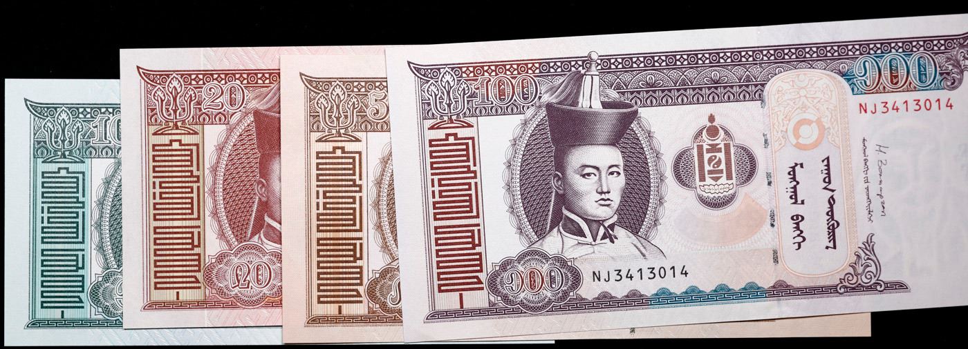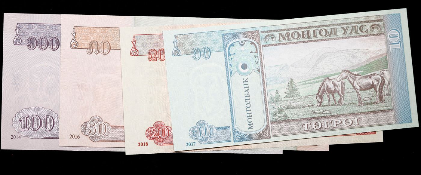 2014-2020 4 Pc Demonination Set Mongolia Banknotes, 10, 20, 50, 100 Tugriks, CU! Grades Brilliant Uncirculated.