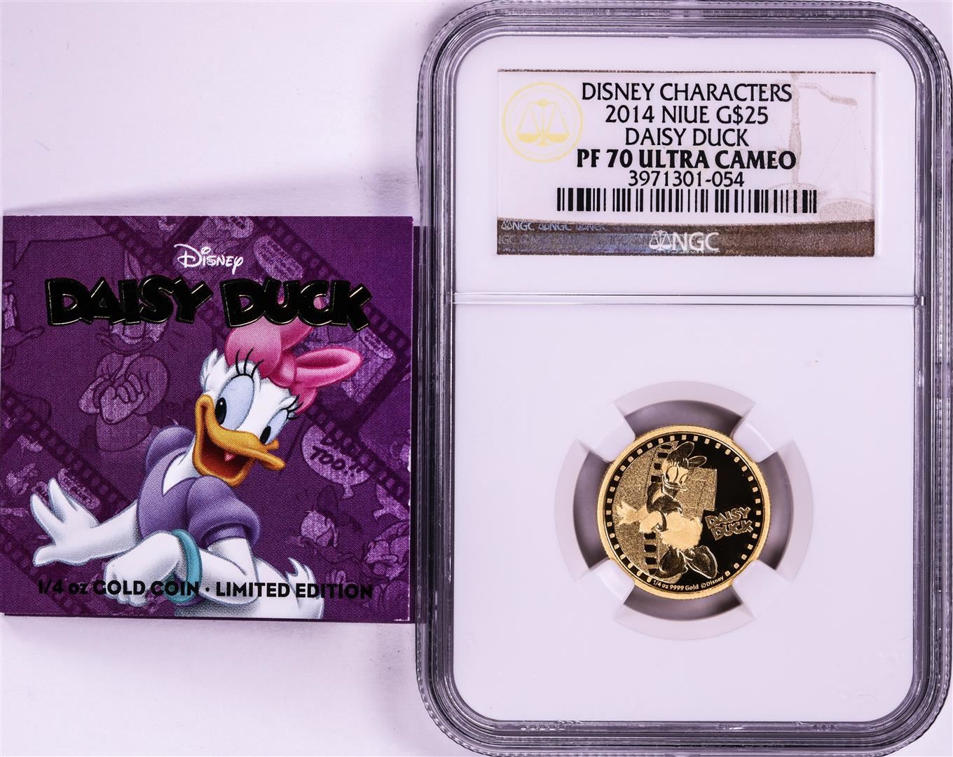One 2014 $25 Proof Niue Disney Daisy Duck Gold Coin NGC PF70 Ultra Cameo. NGC Certified.