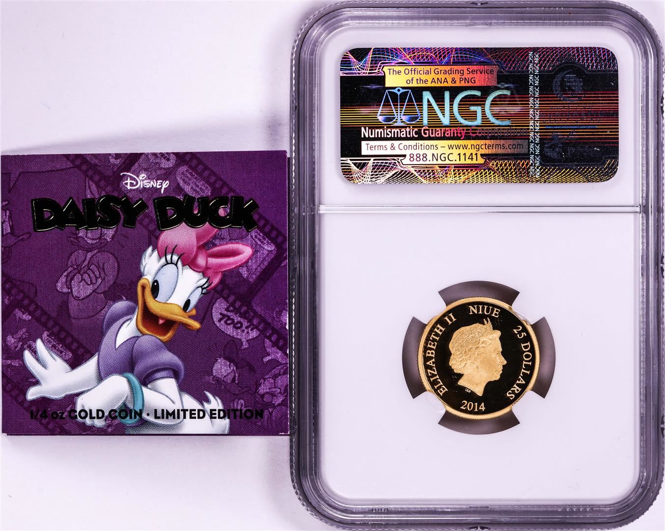 One 2014 $25 Proof Niue Disney Daisy Duck Gold Coin NGC PF70 Ultra Cameo. NGC Certified.