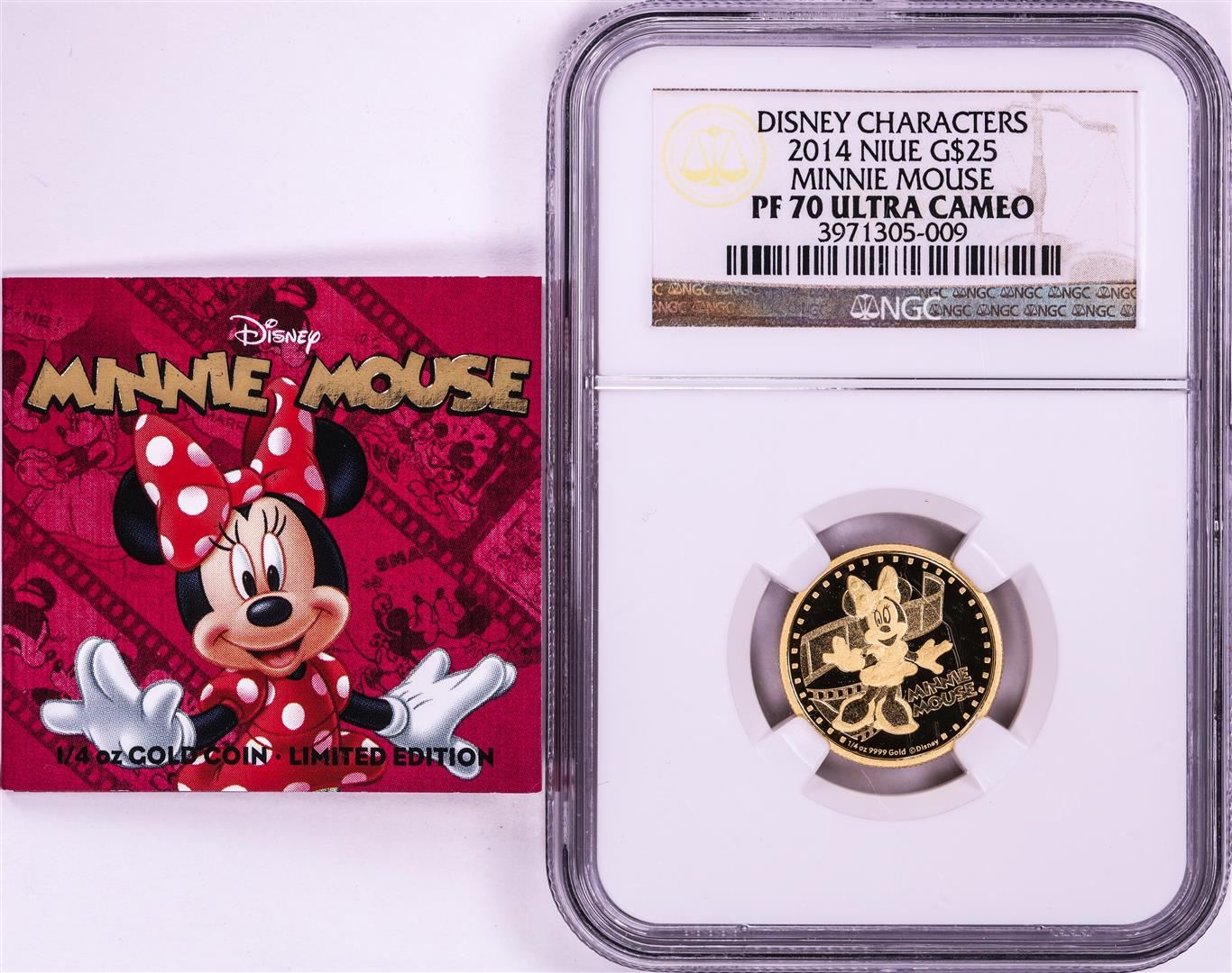 One 2014 $25 Proof Niue Disney Minnie Gold Coin NGC PF70 Ultra Cameo. NGC Certified.