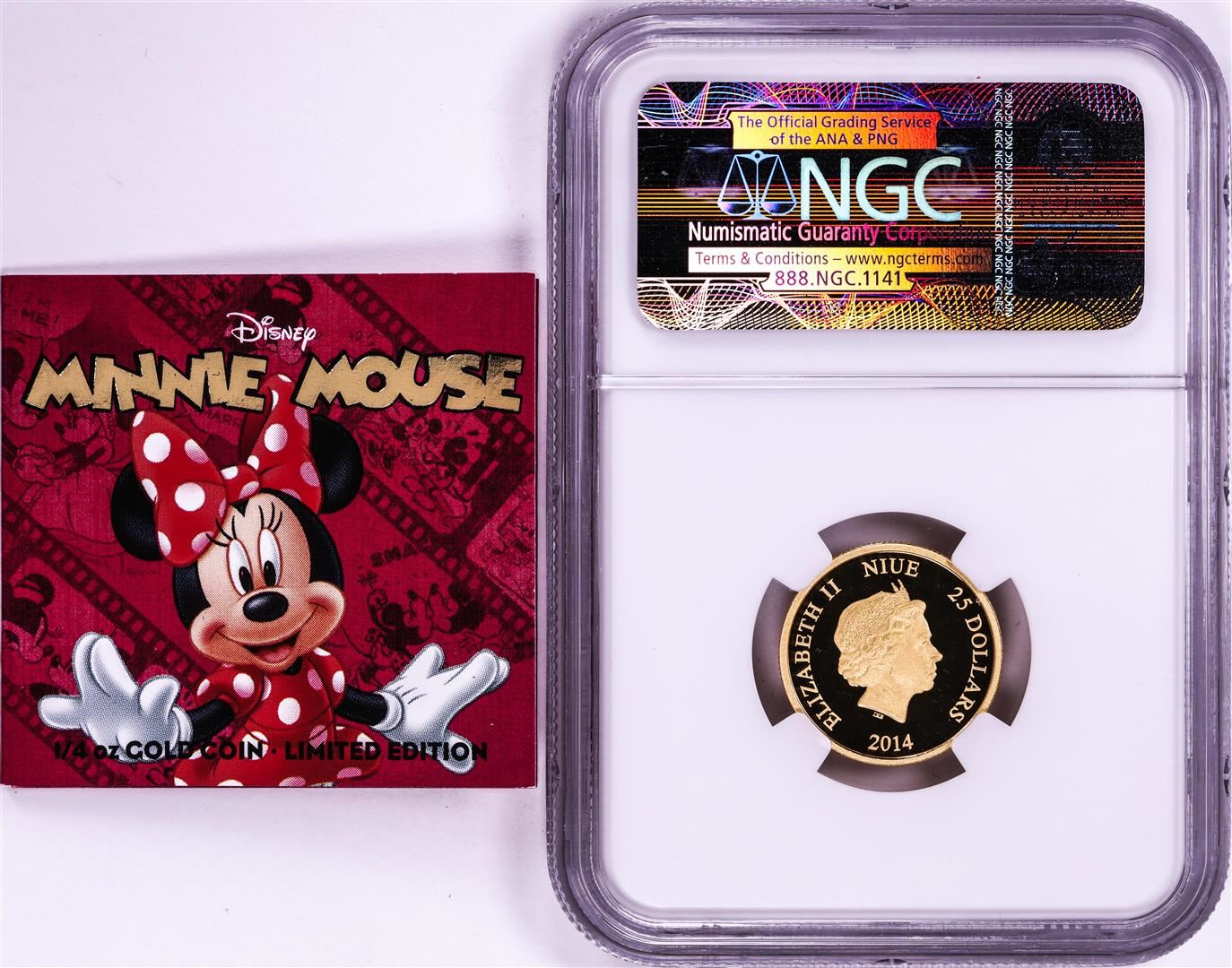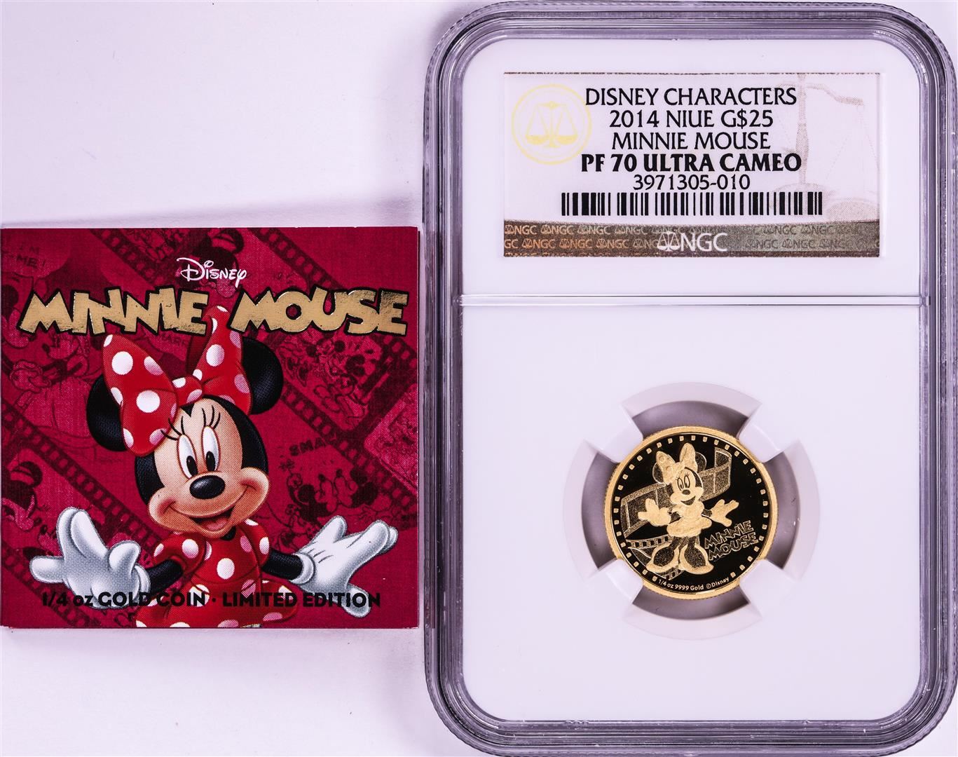 One 2014 $25 Proof Niue Disney Minnie Gold Coin NGC PF70 Ultra Cameo. NGC Certified.