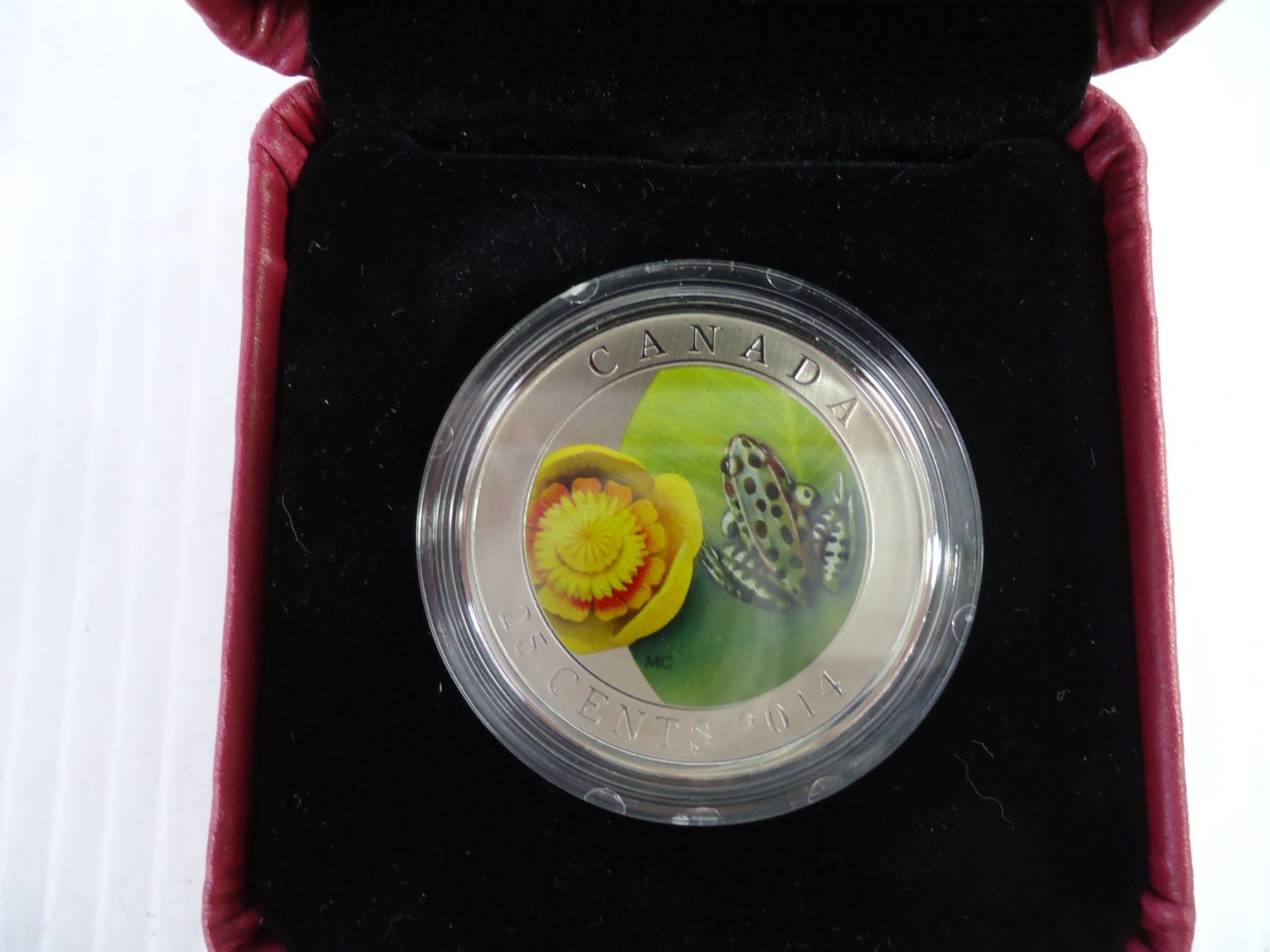 2014- 25 cent Coloured Coin-Water Lily and Leopard Frog