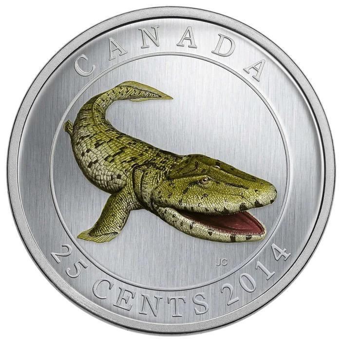 2014 25c Prehistoric Creatures: Tiktaalik - Glow-in-the-Dark Coloured Coin
