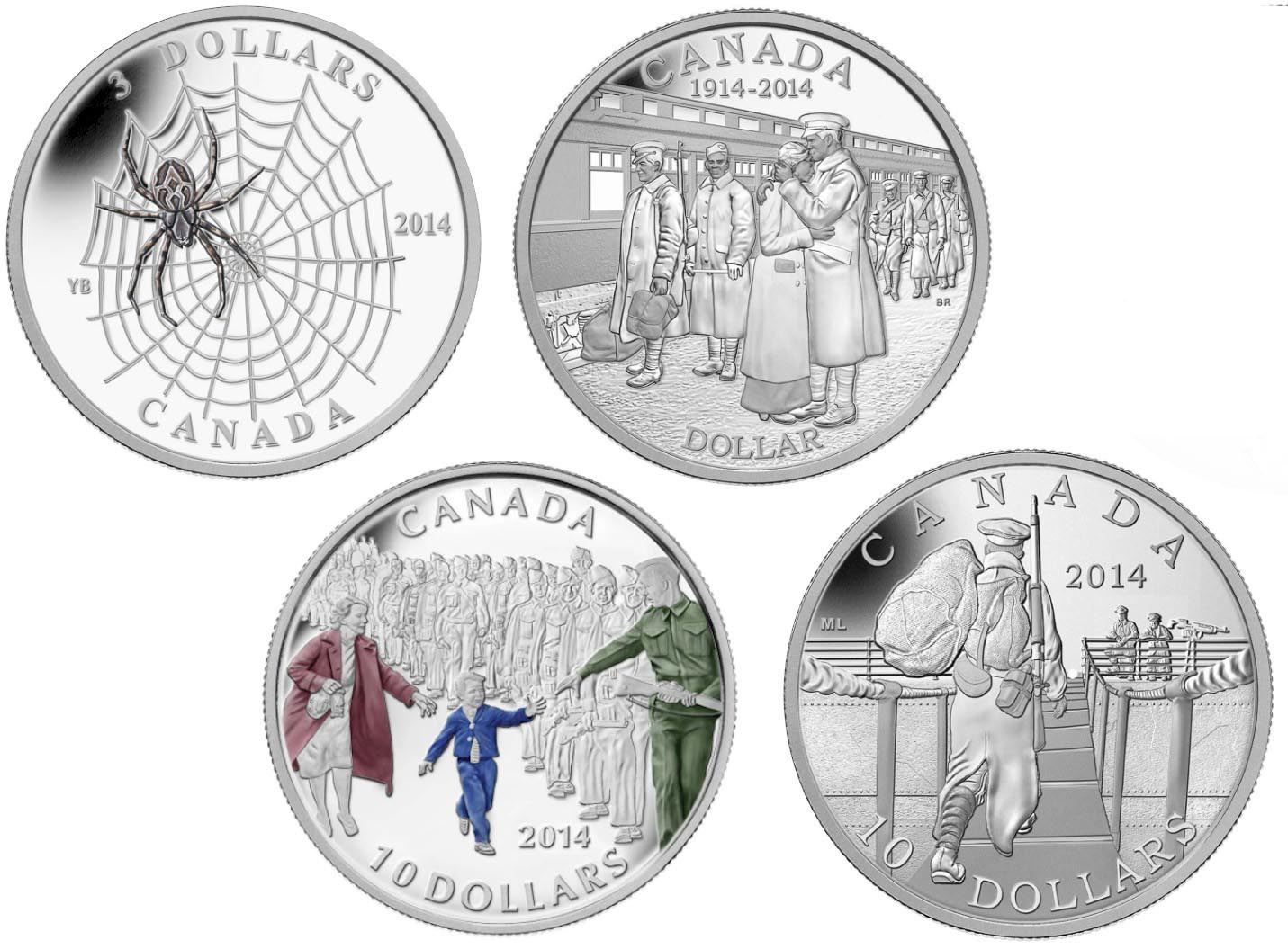 2014 $3 Animal Architects: Spider Web, $1 Declaration of the First World War, 100th Anniversary, 2014 $10 Wait for me, Daddy &