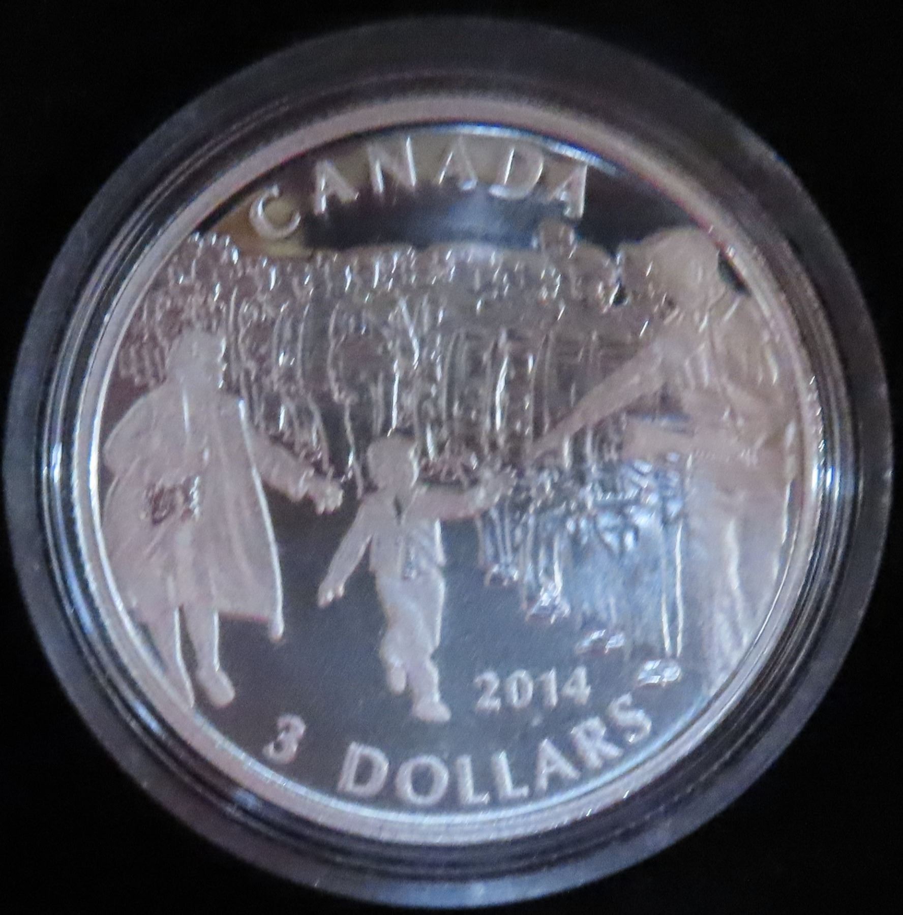 2014 $3 Wait For Me Daddy. 99.99% pure Silver. Proof with Ultra Heavy Cameo. Housed in its original RCM case of issue.