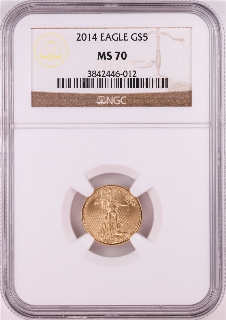 One 2014 $5 American Gold Eagle Coin NGC MS70. NGC Certified.