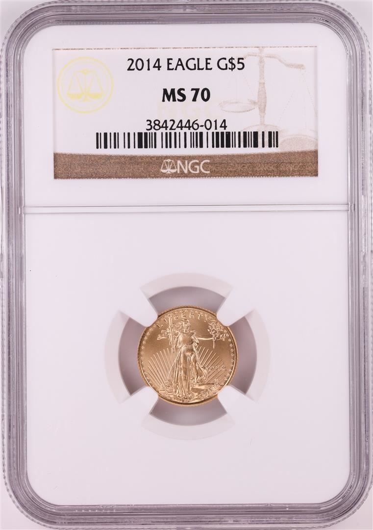 One 2014 $5 American Gold Eagle Coin NGC MS70. NGC Certified.
