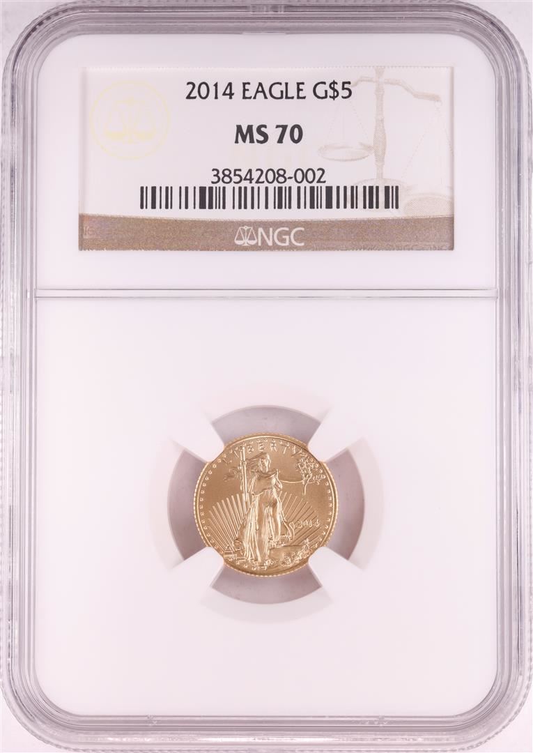 One 2014 $5 American Gold Eagle Coin NGC MS70. NGC Certified.
