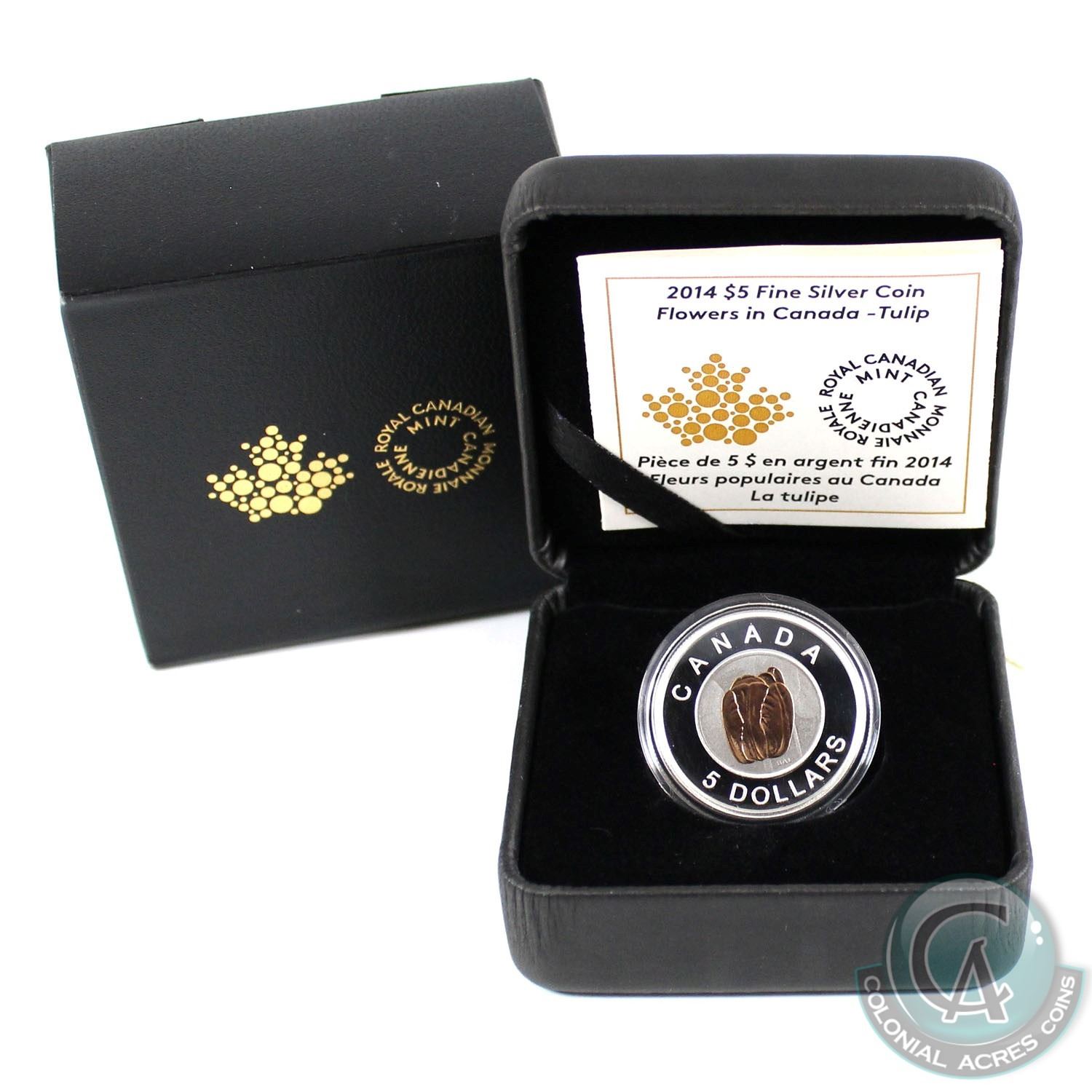 2014 $5 Flowers in Canada - Tulip Fine Silver & Niobium Coin (Sleeve is bent). (TAX Exempt)