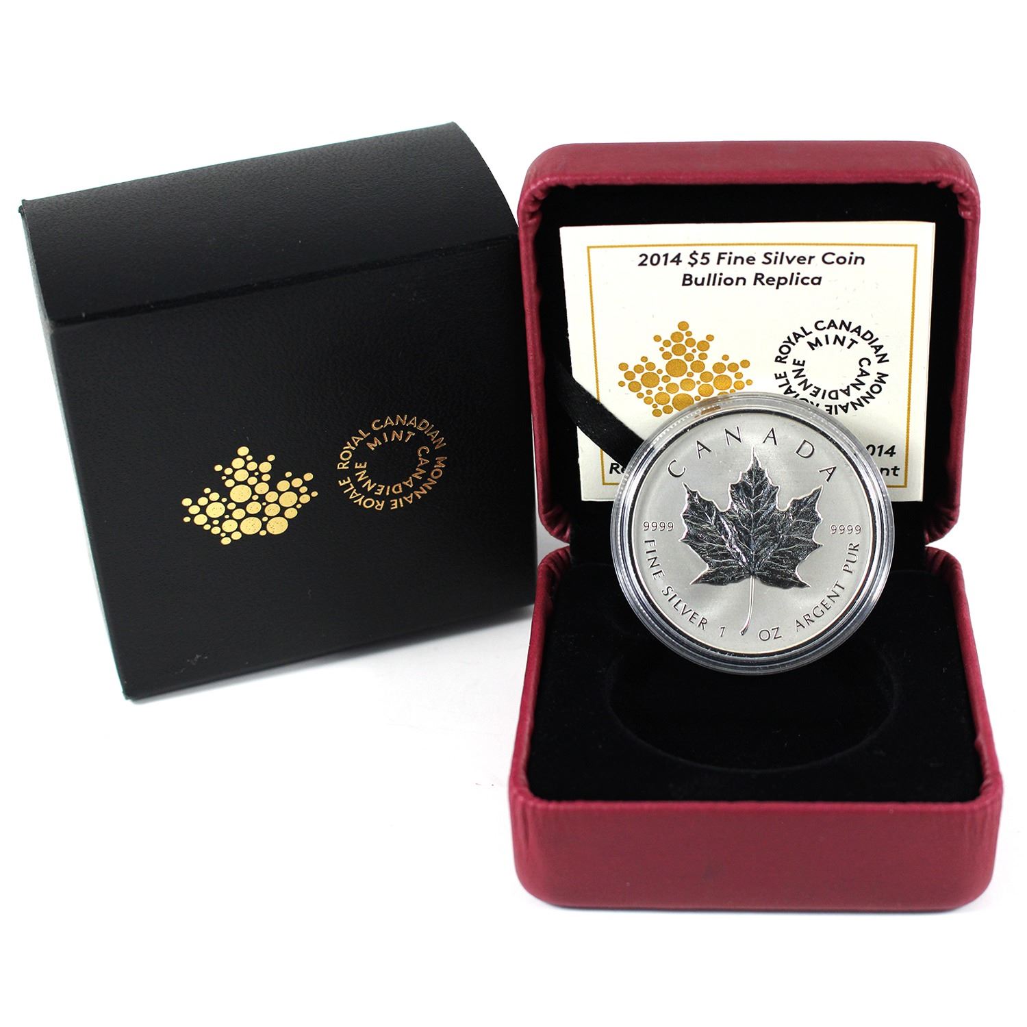2014 $5 SML Reverse Proof Fine Silver Bullion Replica. Some wear to packaging and outer sleeve (Tax Exempt)