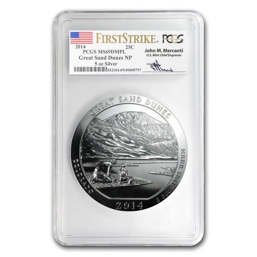 2014 5 oz Silver ATB Grt Sand Dunes MS-69 DMPL PCGS (FS,Mercanti)