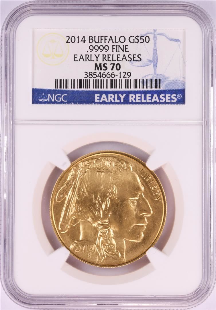 One 2014 $50 American Gold Buffalo Coin NGC MS70 Early Releases. NGC Certified.