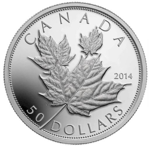 2014 $50 Fine Silver Coin High Relief Coin Maple Leaves.