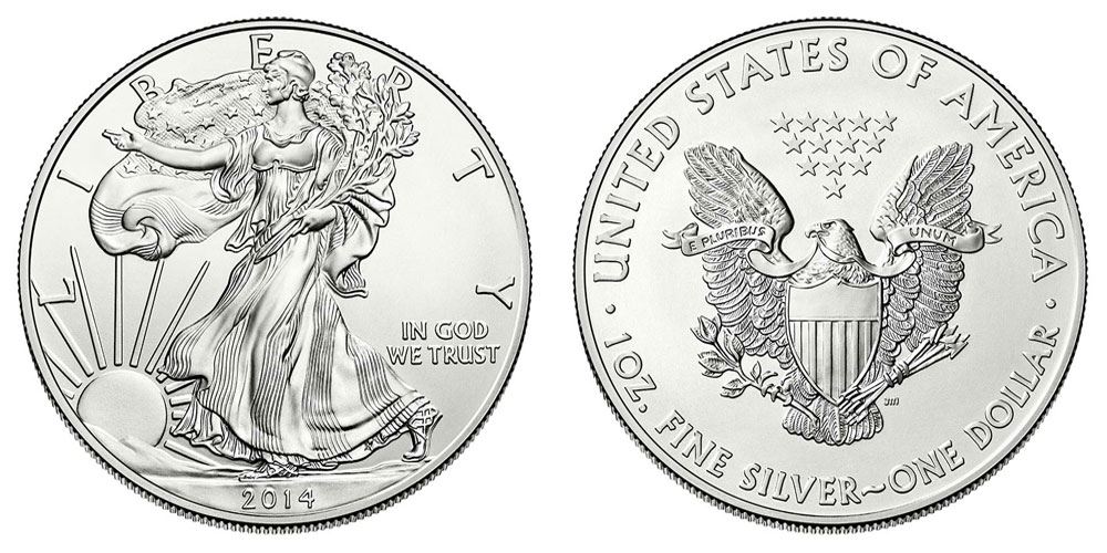 One 2014 American Silver Eagle .999 Fine Silver Dollar Coin.