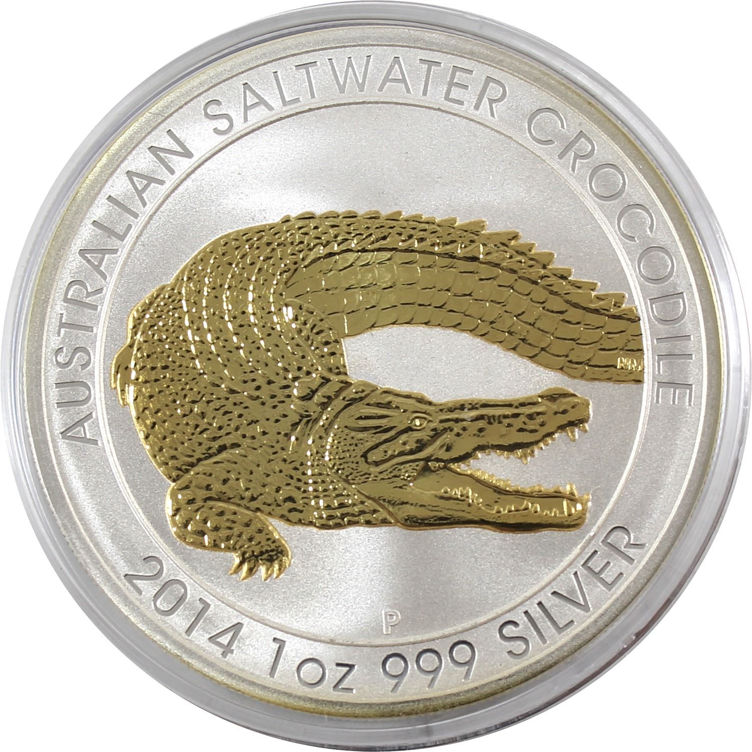 2014 Australia 1oz .999 Fine Silver Gilded Saltwater Crocodile in Capsule (TAX Exempt)