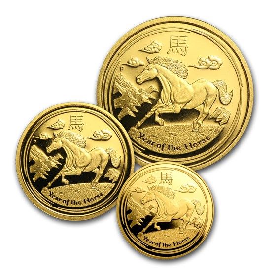 One piece 2014 Australia 3-Coin Gold Horse Proof Set (SII)