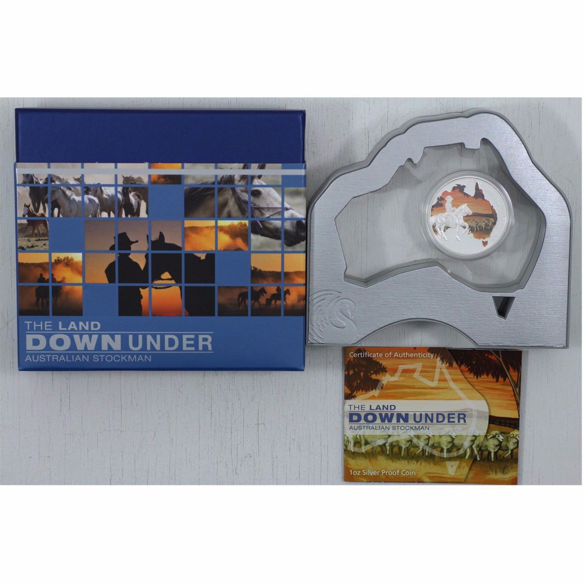 2014 Australia Stockman 1 oz Silver Proof The Land Down Under Series coin (TAX Exempt). Buyers Premium will be added on all items as per our terms of sale. We accept Paypal, Credit Card, E-Transfer Payments, Cheque or Money Orders (there is an additional 3% fee for using Paypal or Credit Card). All invoices will be emailed immediately following the auction, please contact us if you would like to pay by credit card or receive a new revised lower total for mailing in payment or sending an e-transfer (3% discount). All Items Are Sold "AS IS", no returns
