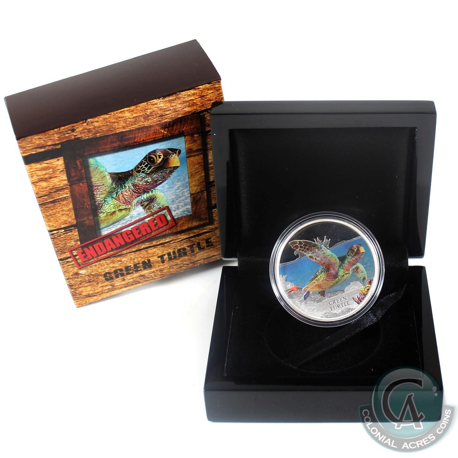 2014 Austrlia $1 Endangered - Green Turtle 1oz Fine Silver Coin (Tax Exempt)
