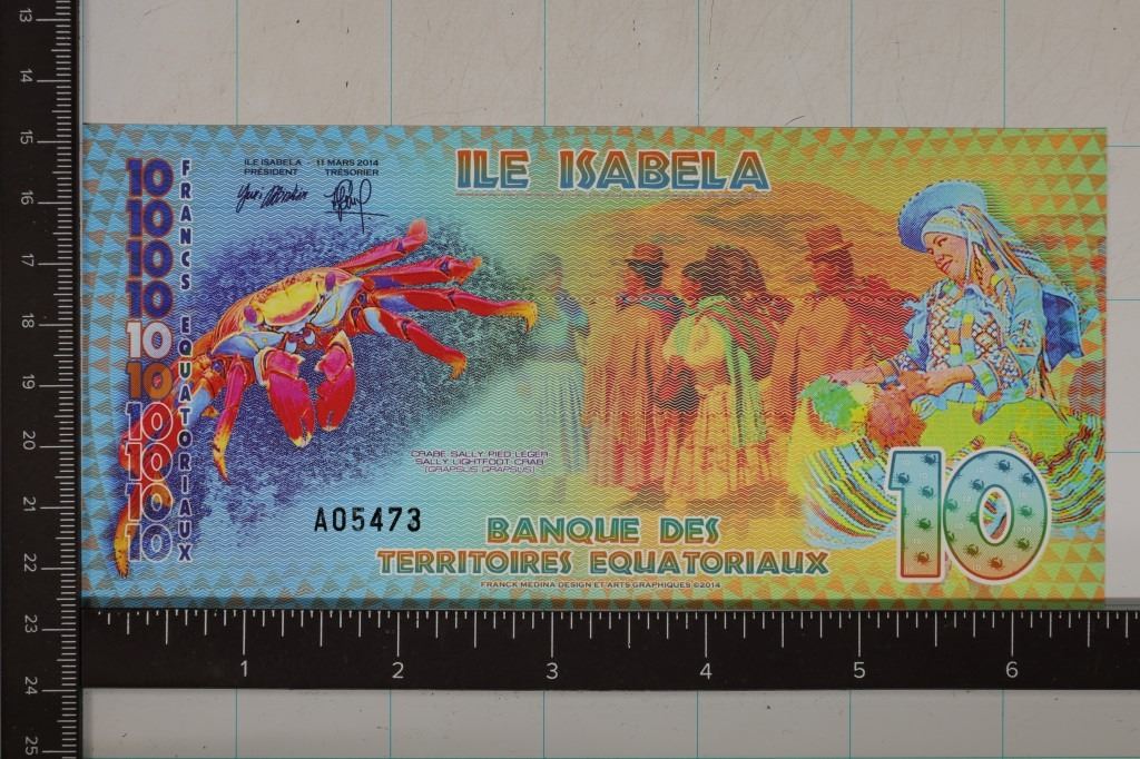 ISLAND 10 FRANC CRISP UNC POLYMER COLORIZED BILL