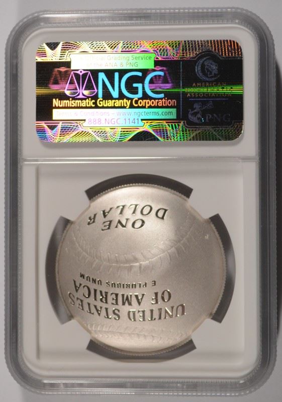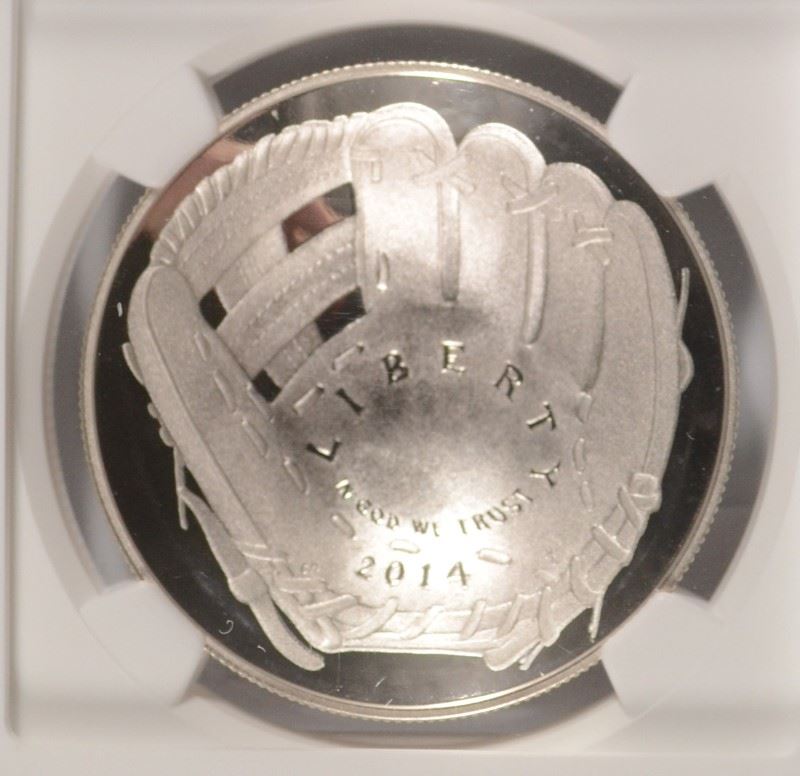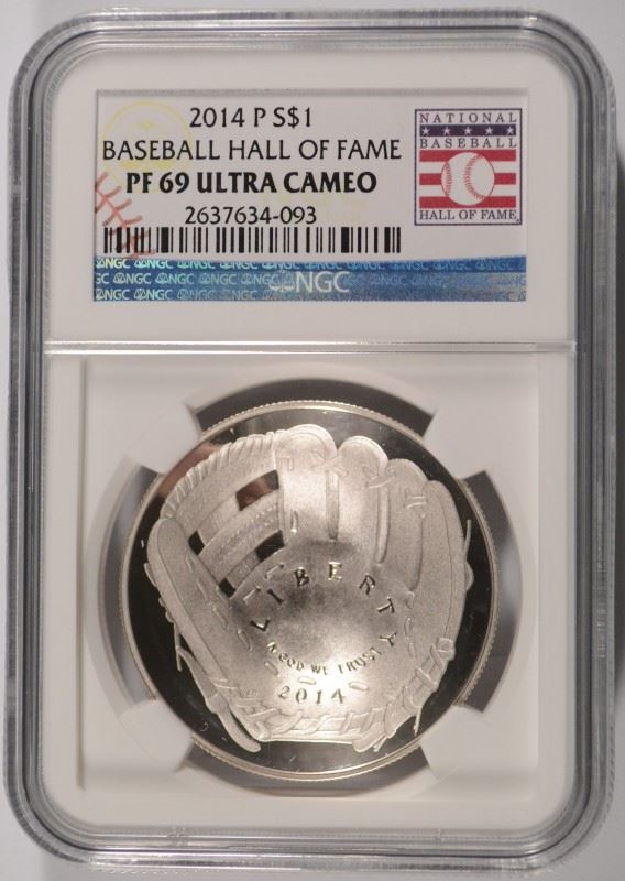2014 BASEBALL HALL OF FAME COMMEMORATIVE SILVER DOLLAR, NGC PROOF-69 ULTRA CAMEO