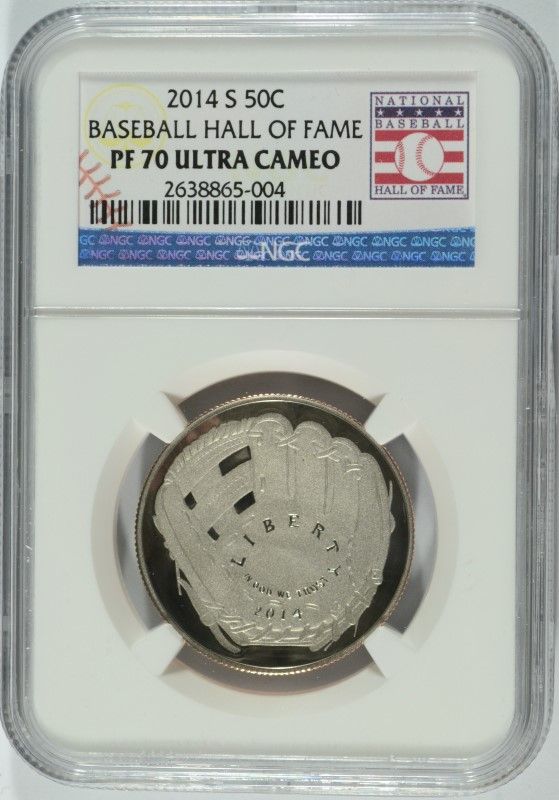 2014 BASEBALL HALL OF FAME PROOF HALF DOLLAR, NGC PROOF-70 ULTRA CAMEO
