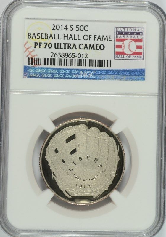 2014 BASEBALL HALL OF FAME PROOF HALF DOLLAR, NGC PROOF-70 ULTRA CAMEO