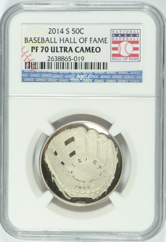 2014 BASEBALL HALL OF FAME PROOF HALF DOLLAR, NGC PROOF-70 ULTRA CAMEO