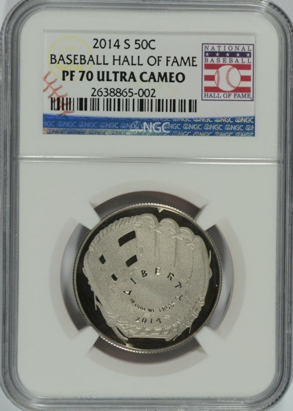 2014 BASEBALL HALL OF FAME PROOF HALF DOLLAR, NGC PROOF-70 ULTRA CAMEO