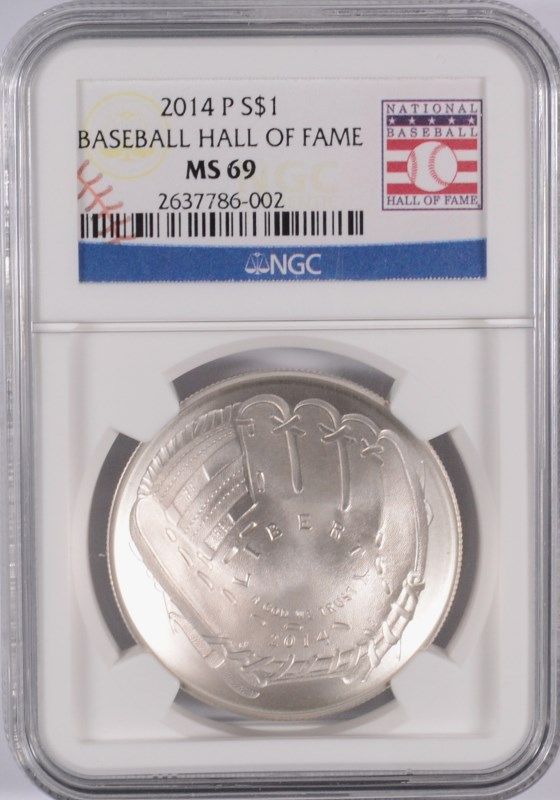 2014 BASEBALL HALL OF FAME SILVER DOLLAR, NGC MS-69! WOW!!